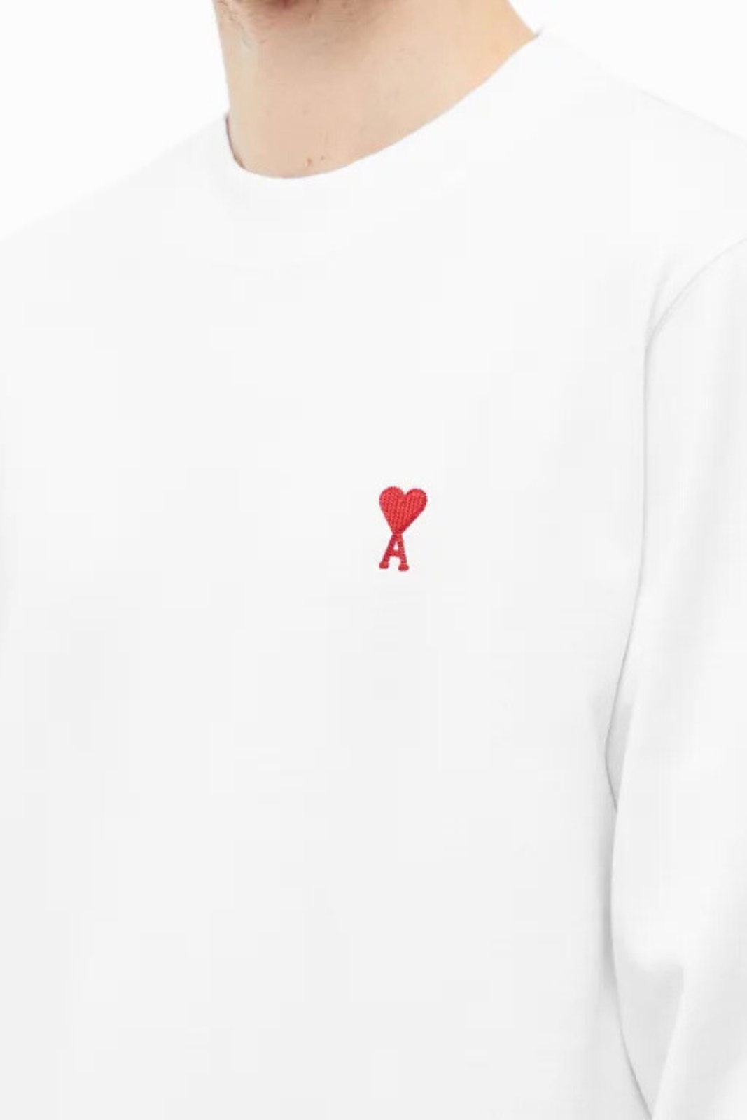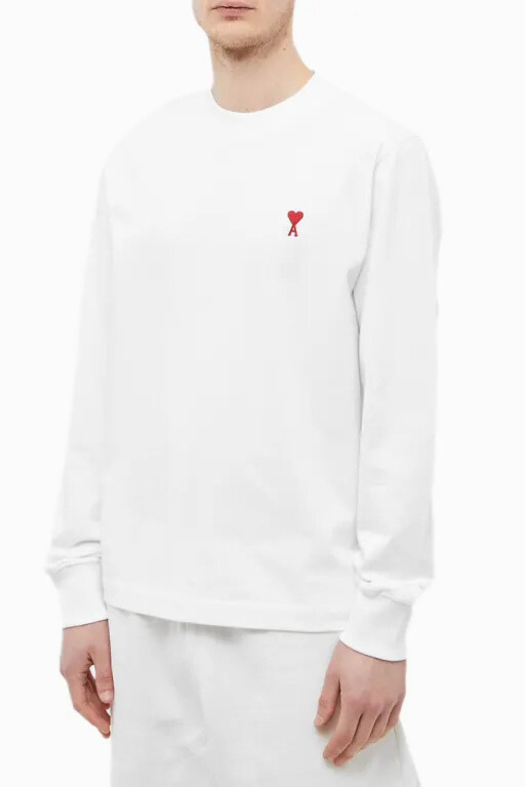 Тениска с дълъг ръкав Ami Paris с малка форма на сърце, бяла