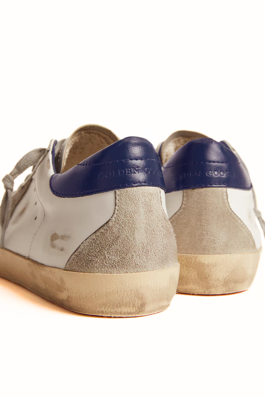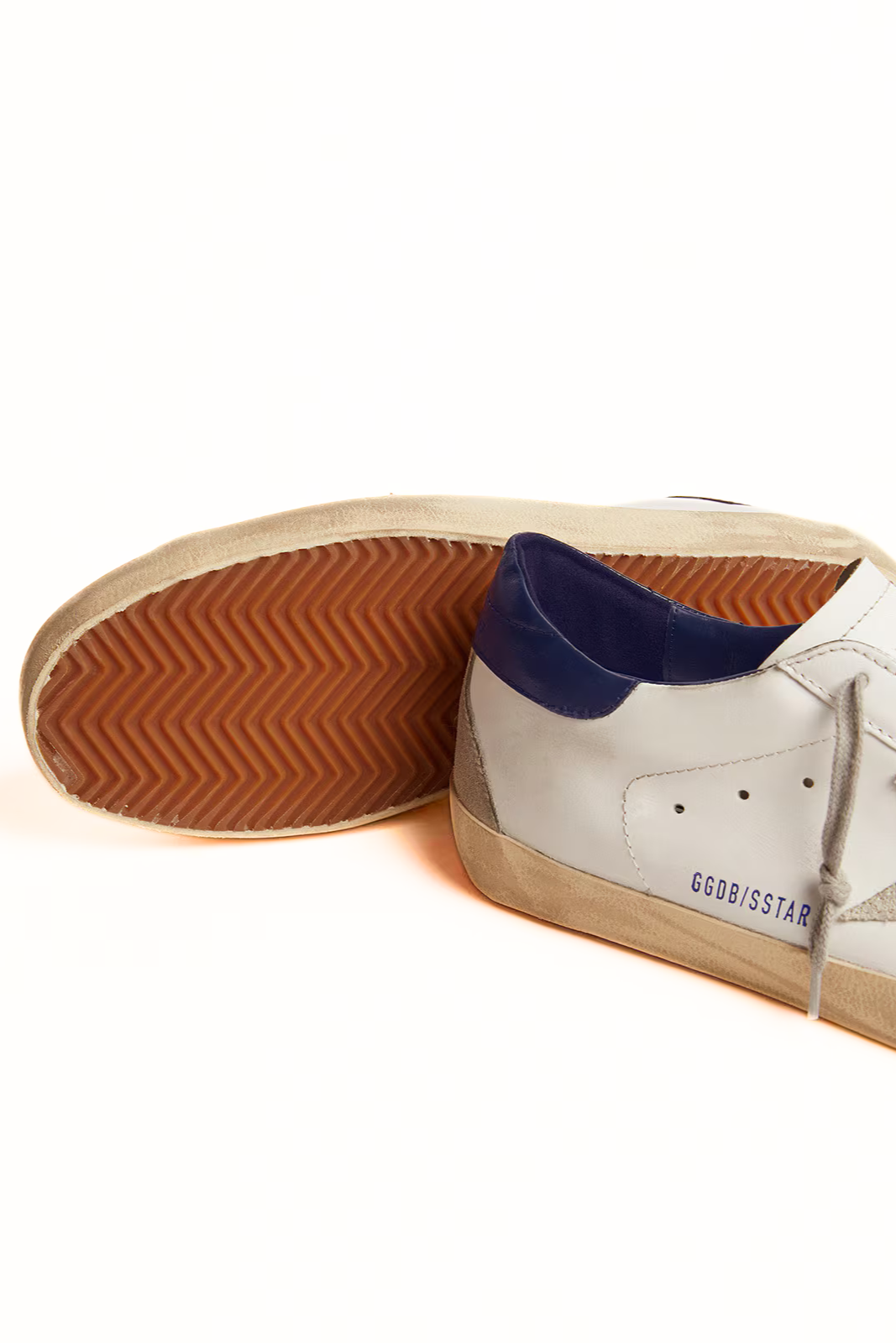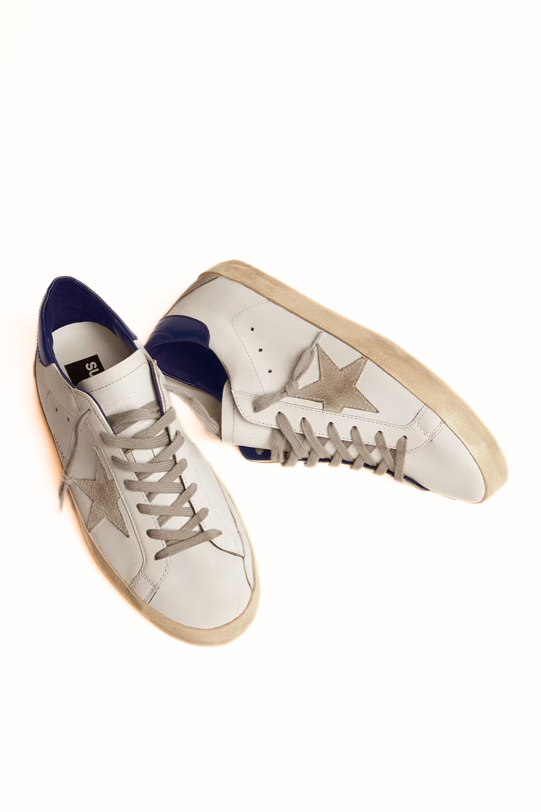 Мъжки кецове Golden Goose Super-Star със звезда от велур и син ток.